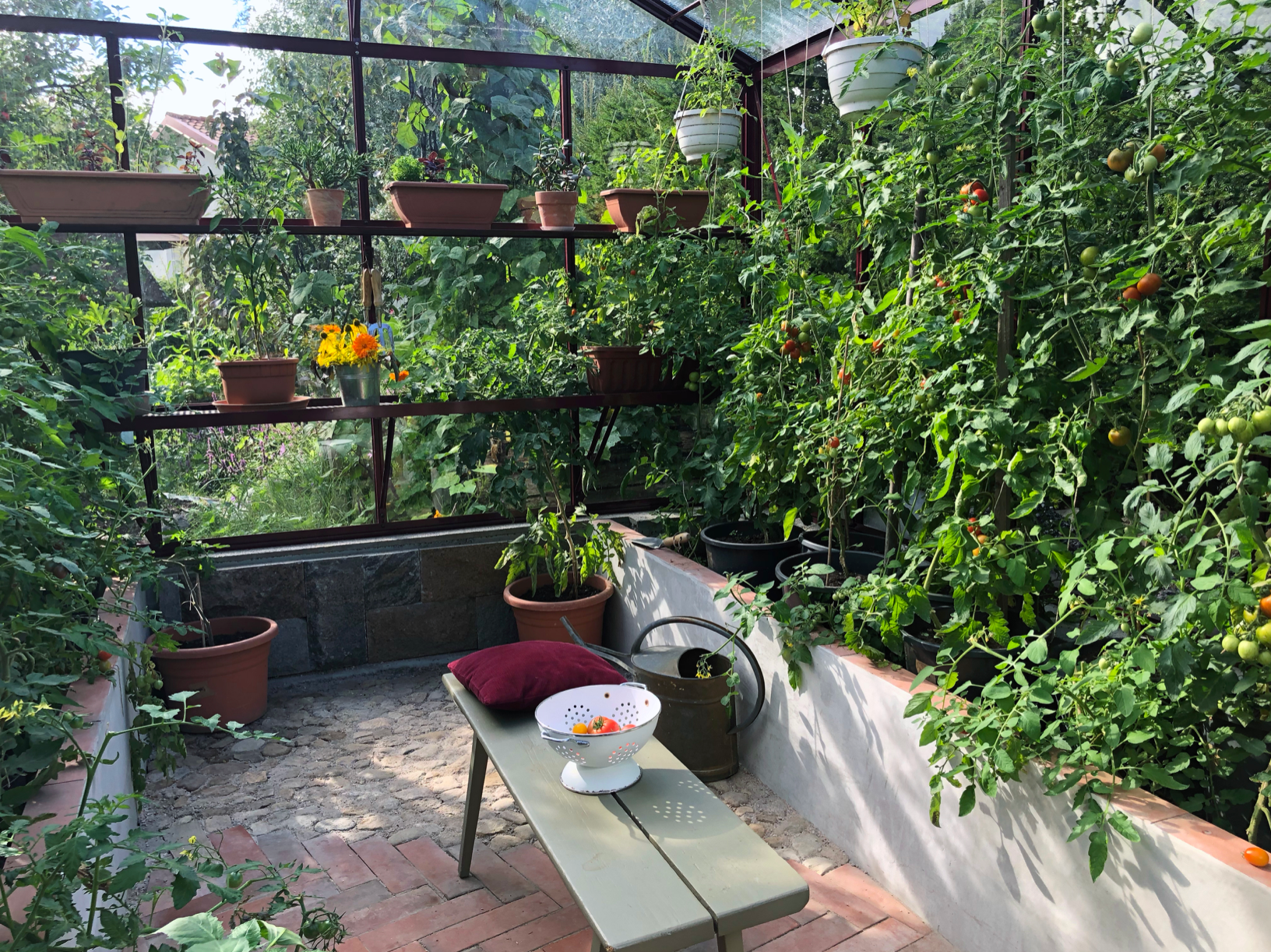 We recommend considering the purchase of one or more shelves, either of the same or contrasting widths and lengths. Strategically position them at varying heights on different walls. If necessary, you can relocate the shelves until the optimal arrangement is achieved. Additionally, you have the option to harmonize the shelf color with that of your greenhouse or orangery.