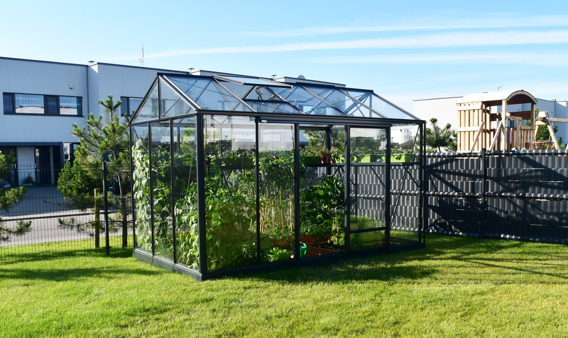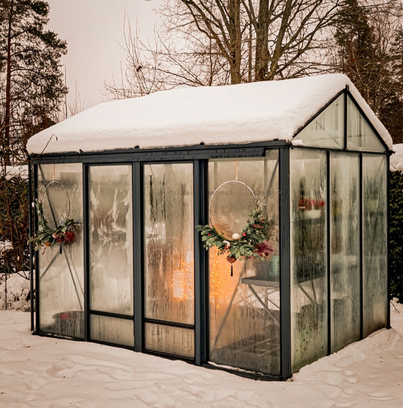 - Greenhouse Design: Timeless rectangular design with straight walls, a gable roof, roof windows, and a smooth-sliding door.